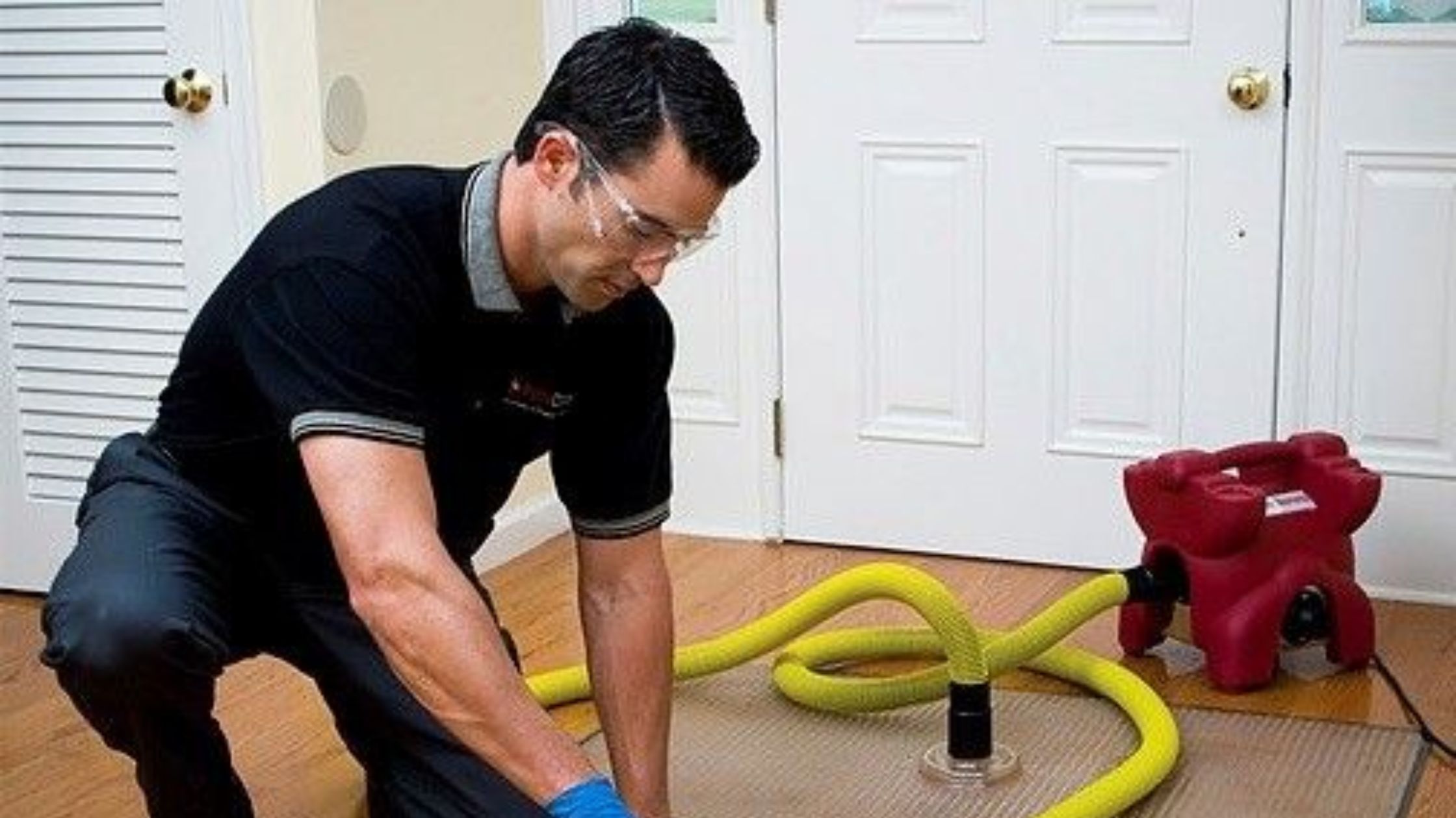 After water extraction, the affected areas are dried using industrial air movers and dehumidifiers. This step removes remaining moisture from walls, floors, and structural components.
